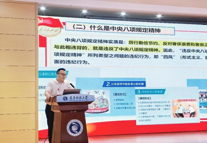 赵书昭教授从“什么是中央八项规定和中央八项规定精神,为什么要深入贯彻中央八项规定精神学习教育,如何实现作风建设从徙木立信到化风成俗”三个方面,对中央八项规定及其实施细则精神进行了详细解读。通过详实的数据、生动的案例,赵书昭教授深刻剖析了在强国建设的关键时期,在全党开展深入贯彻中央八项规定精神学习教育,是党中央作出的重大决策部署,对于进一步巩固深化主题教育和党纪学习教育成果、纵深推进全面从严治党,具有重要而深远的意义。报告内容主题鲜明、内涵丰富,既有理论高度,又紧密联系实际,让大家触动警醒、深受教育。