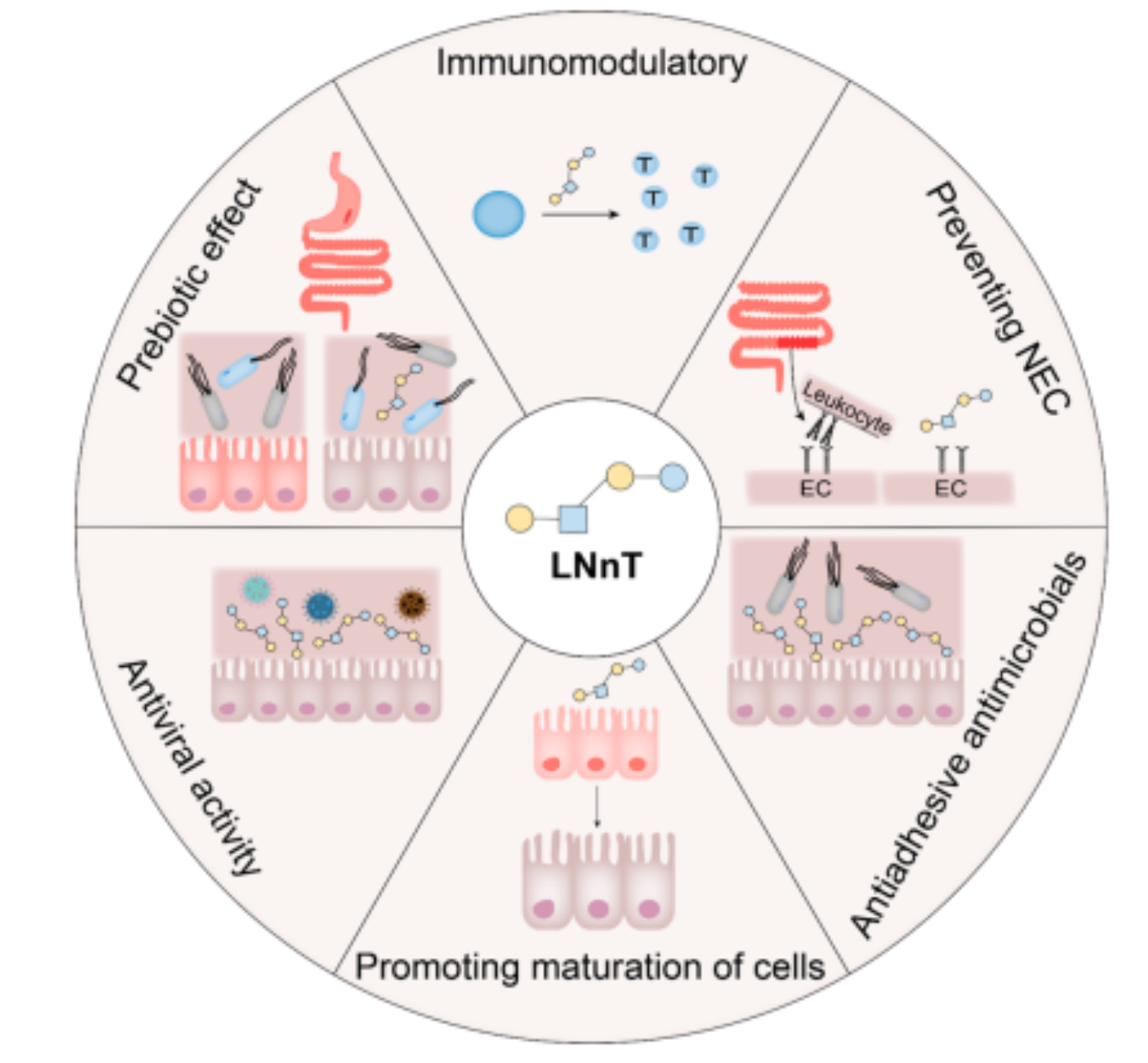 乳酰-N-新四糖(Lacto-N-neotetraose,LNnT)是母乳中的第三大固体成分人乳寡糖的重要的成分之一,是由β-D-半乳糖-(1→4)-β-D-半乳糖-(1→3)-β-D-葡萄糖和β-D-半乳糖单元通过糖苷键连接而成的四糖。LNnT具有益生元效应、免疫调节功能、调节肠道菌群功能、抗黏附抗微生物功能、抗病毒功能,在婴幼儿奶粉、功能型食品、医药中间体等领域的应用前景十分广泛。