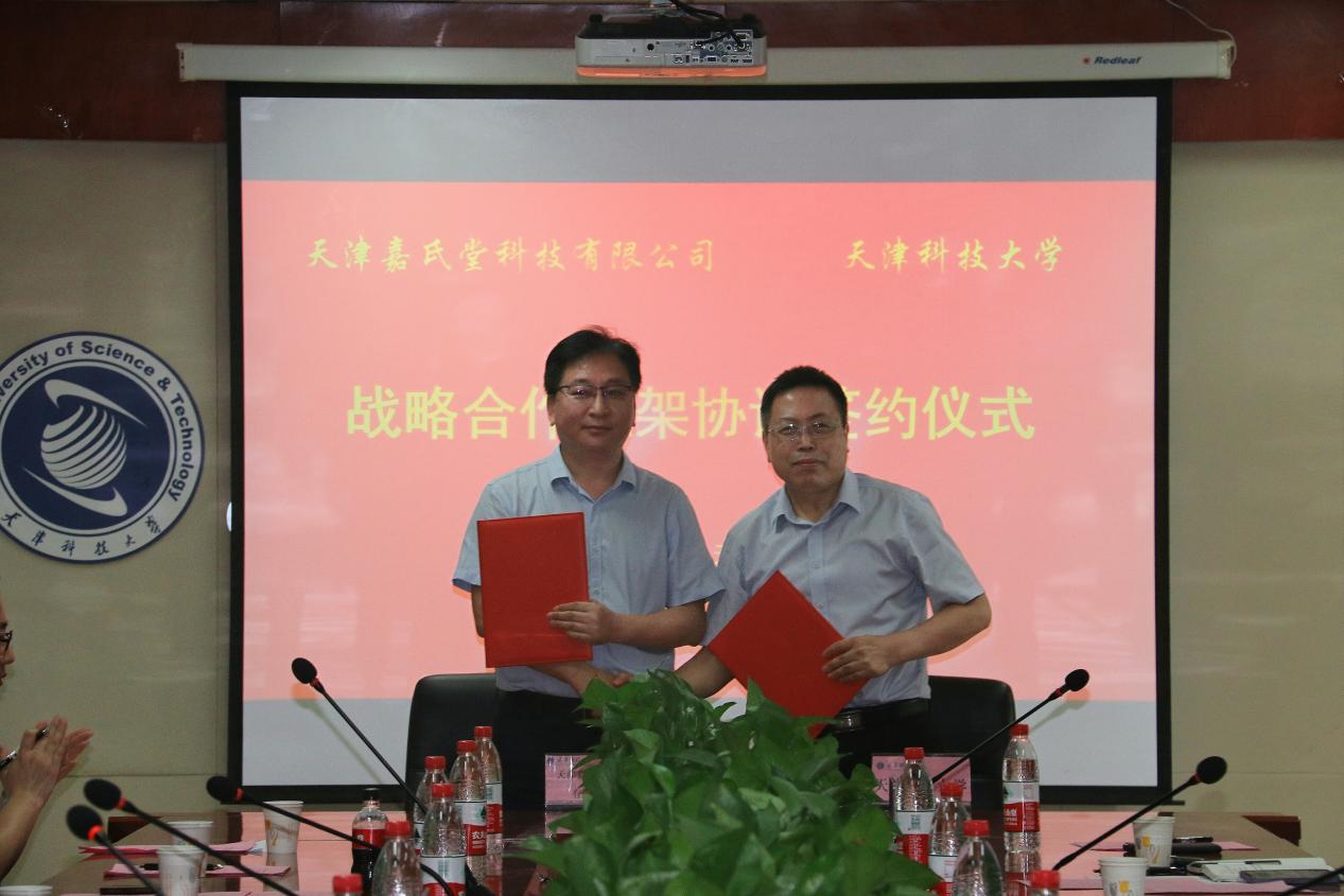 党委副书记、校长路福平与天津嘉氏堂科技有限公司丁利营代表双方签署战略合作框架,宣布成立“天科大-天津嘉氏堂皮肤科学研究院”。此次签约,天津嘉氏堂科技有限公司与哔咔漫画