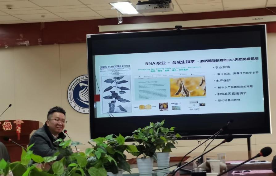 黄林峰博士在接下来的环节中对自己的研究领域、教育工作经历和科研成果做了介绍,黄博士的科研成果和国际化教育经历引起了在座有着同样研究方向和教育背景的滕玉鸥、马龙、杨杨等教授的强烈共鸣,宾主双方围绕RNAi药物生物生产、生物农业、双链RNA等板块展开了热烈的交流和讨论,并就小核酸药产业未来的发展前景一致看好。