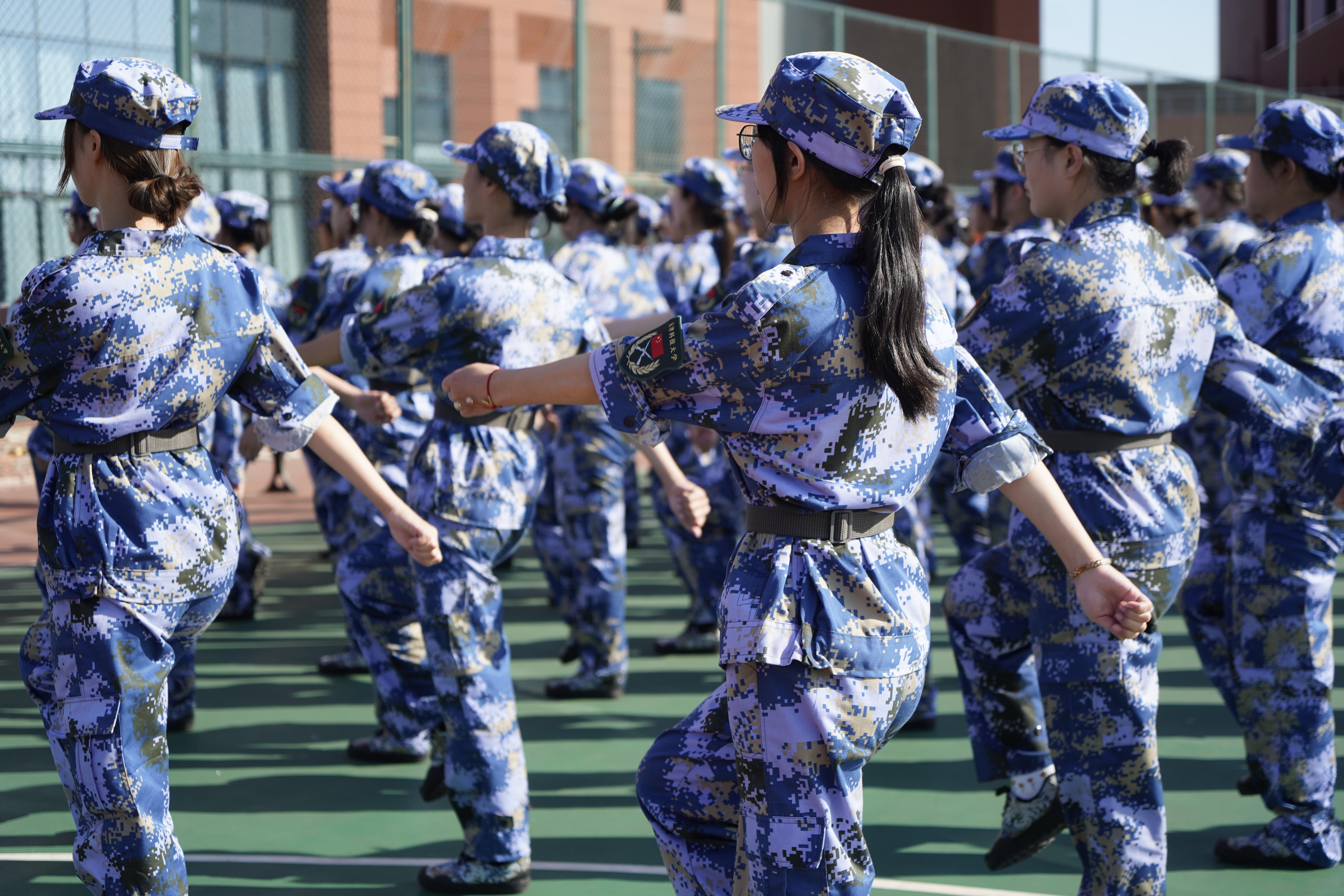 训练场上,大家的动作整齐划一,摆臂时手臂擦过裤缝发出的“刷刷”声,齐步走时脚跟后带出的“哒哒”声,踏步时整齐的步伐声,还有转体时的靠脚声,此起彼伏,交织成一首乐章。每当教官下达指令,同学们都会迅速做出反应,动作干净利落,没有丝毫拖泥带水。尽管汗水已经浸湿了衣衫,但没有人喊累叫苦;尽管烈日当头照耀,也没有人退缩放弃。每个人都在用自己的行动和汗水谱写军训的华美乐章。