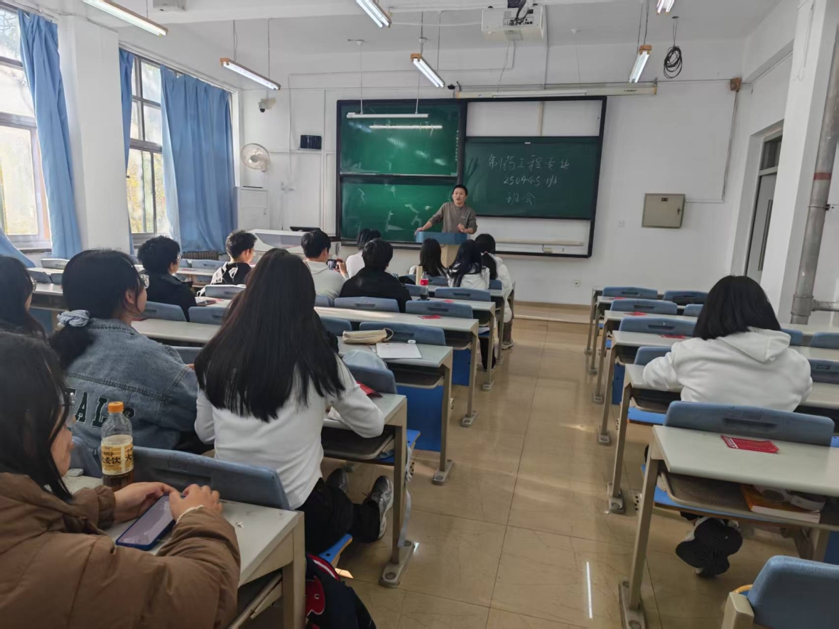 制药工程1班导师周云雷老师以“药者仁心”为题,从药企的质量管控中心到药品监管的一线战场,从跨境药品的检验检疫到基层医疗机构的用药监测,从微观分子纯度鉴别到宏观全民用药安全,解析了 “健康中国” 的国家战略。她鼓励学生:“以严谨为尺、以精准为刃,在数据中探寻真相,在标准中坚守底线,让药物质量分析成为守护公众健康的 “火眼金睛”,在微观世界的深耕中,成就宏观层面的民生价值,用专业力量书写属于新时代制药人的担当与辉煌!