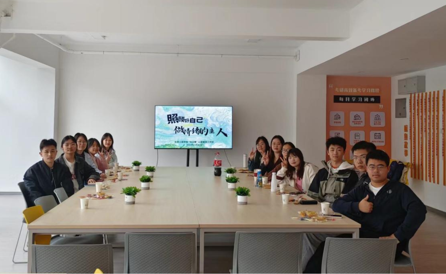 于滨海中校区1公寓“一站式”社区活动室举办“照顾好自己,做情绪的主人”朋辈团体辅导活动,活动由“向日葵”心理委员工作坊的心理委员骨干共同组织。