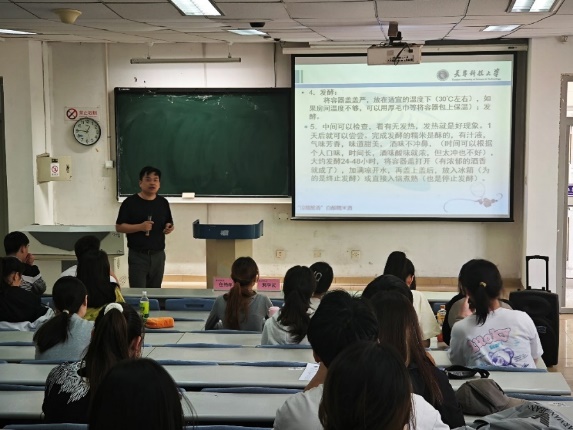 郭学武老师从糯米酒的起源和发展入手,详细阐述了糯米酒酿造的基本原理和工艺流程。他结合自身的研究成果和实践经验,深入剖析了糯米酒酿造过程中的关键技术环节和注意事项。学生们听得津津有味,纷纷表示对糯米酒酿造技术有了更加深入的了解和认识。