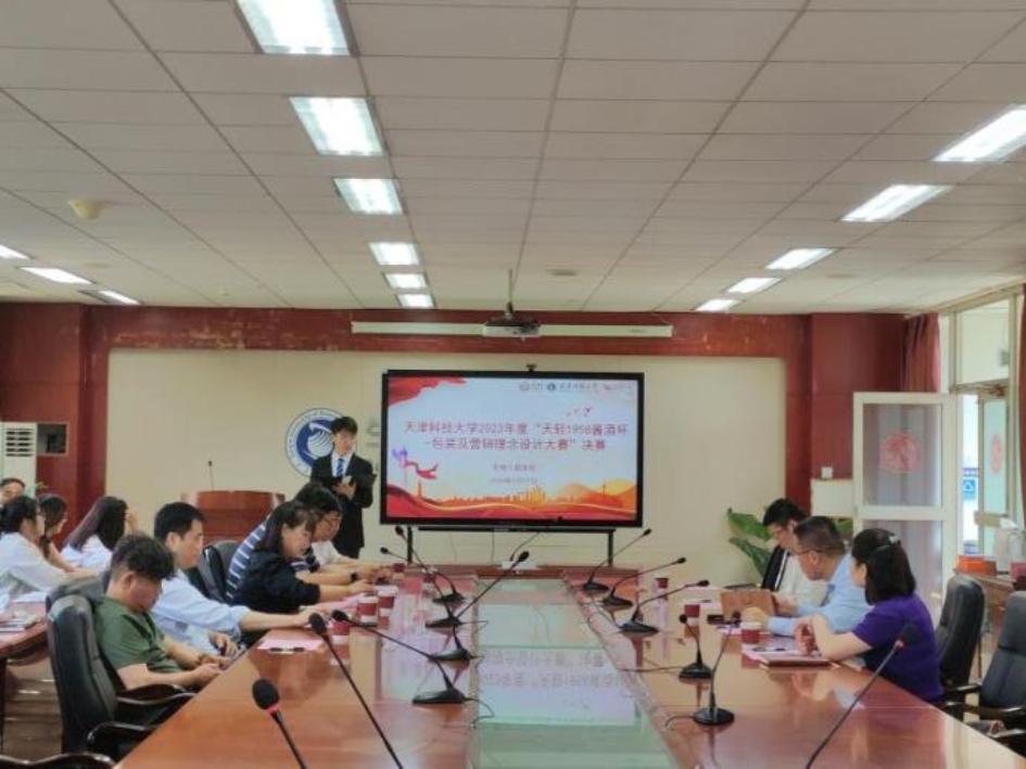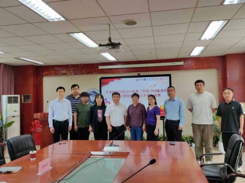 2023年度“天轻1958酱酒杯-包装及营销理念设计大赛”于5月17日在滨海中院2号楼208举行,中轻天科(天津)生物技术有限公司总经理孙根元、中轻天科(天津)生物技术有限公司市场经理张婷婷、经济与管理学院党委副书记刘阳、食品科学与工程学院党委副书记聂慎德、哔咔漫画