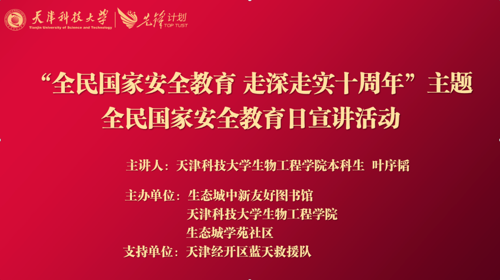 、中新友好图书馆、天津经开区蓝天救援队联合生态城学苑社区,开展了“全民国家安全教育 走深走实十周年”为主题的宣讲活动。