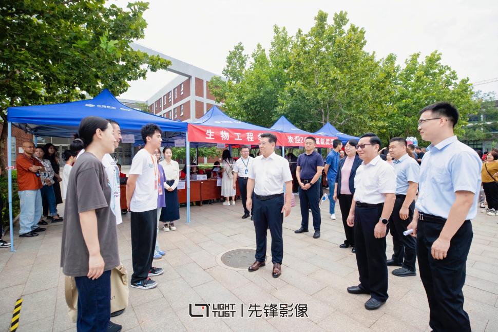 校院两级领导们来到学院迎新现场,驻足迎新现场的每一处详细询问、了解迎新工作的进展并与新生们亲切交谈,言语之间满怀对大家的关怀和期待。