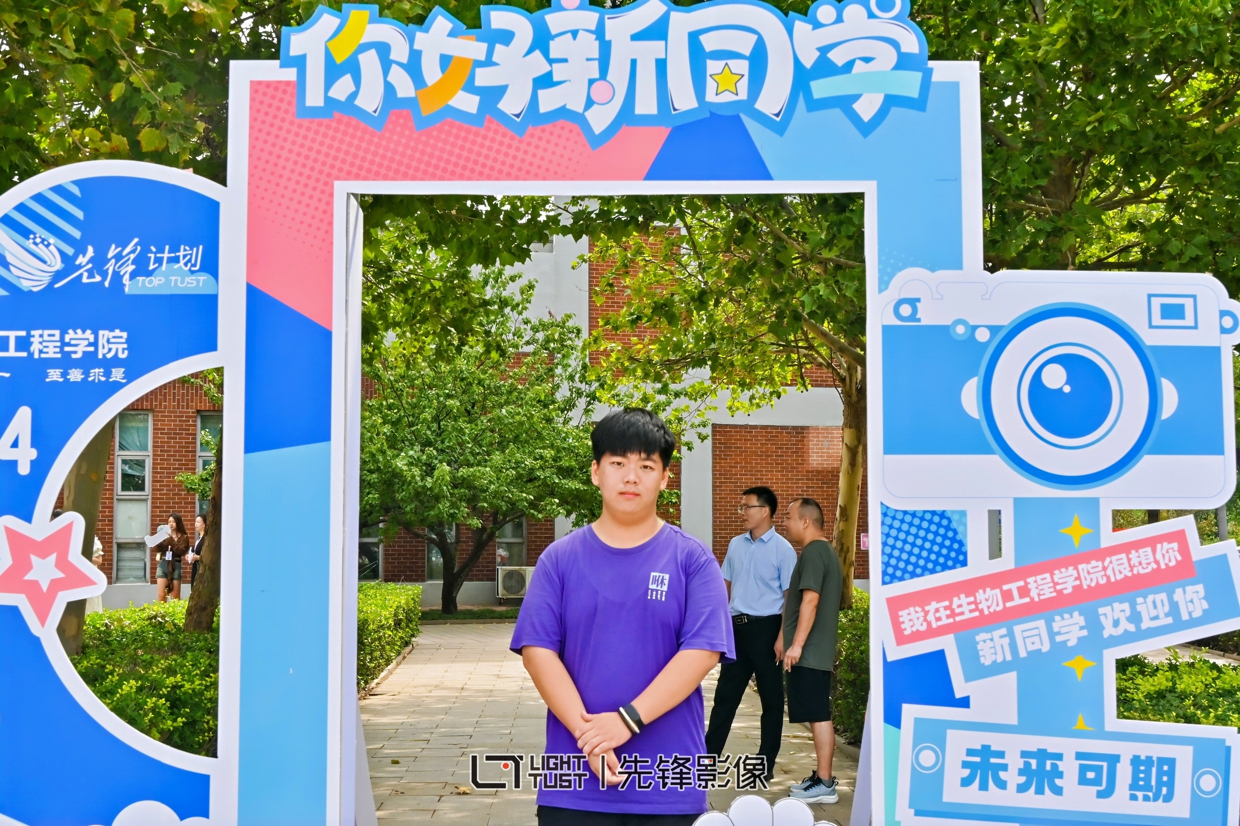 迎新现场,“咔嚓”!在学校打卡的第一张照片定格初遇的一瞬,崭新的面貌、青春的笑容永恒于方寸间的照片,你们的到来为校园增添了崭新的色彩。