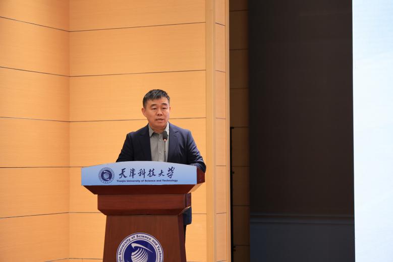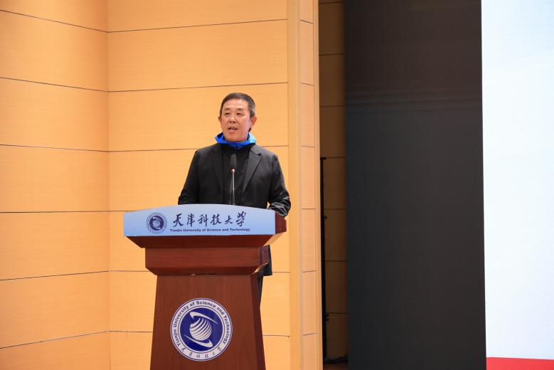 党委副书记、校长路福平教授致辞。他向贵州茅台酒销售有限公司天津省区、贵州茅台天津经销商联谊会对学校教育事业的支持表示衷心感谢,并向所有获奖同学表示祝贺。他表示,贵州茅台奖学金从最初的单项奖励到如今的多赛道赛事,从理论研究到实物创作,奖学金已从单纯的资金支持,升级为“赛事育人—实践赋能—文化传承”的综合平台,在促进校企产学研结合、探索订单式人才培养、推进中华传统酒文化发展等方面发挥了重要作用。