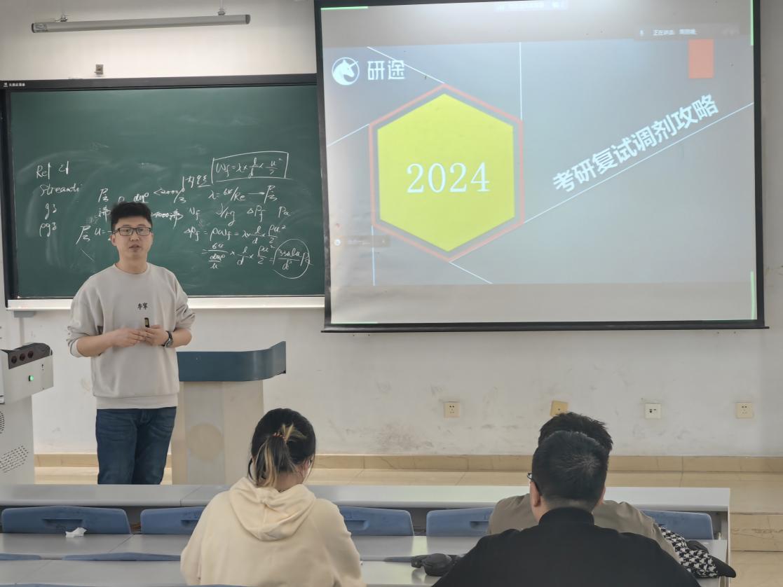邀请了考研培训机构研途,为即将迎来考研复试的学子们举办考研复试备考规划指导讲座。讲座采取线上线下相结合的方式进行,由本科生2020级辅导员老师周丽媛主持,2020级参加研究生考试的同学参加。