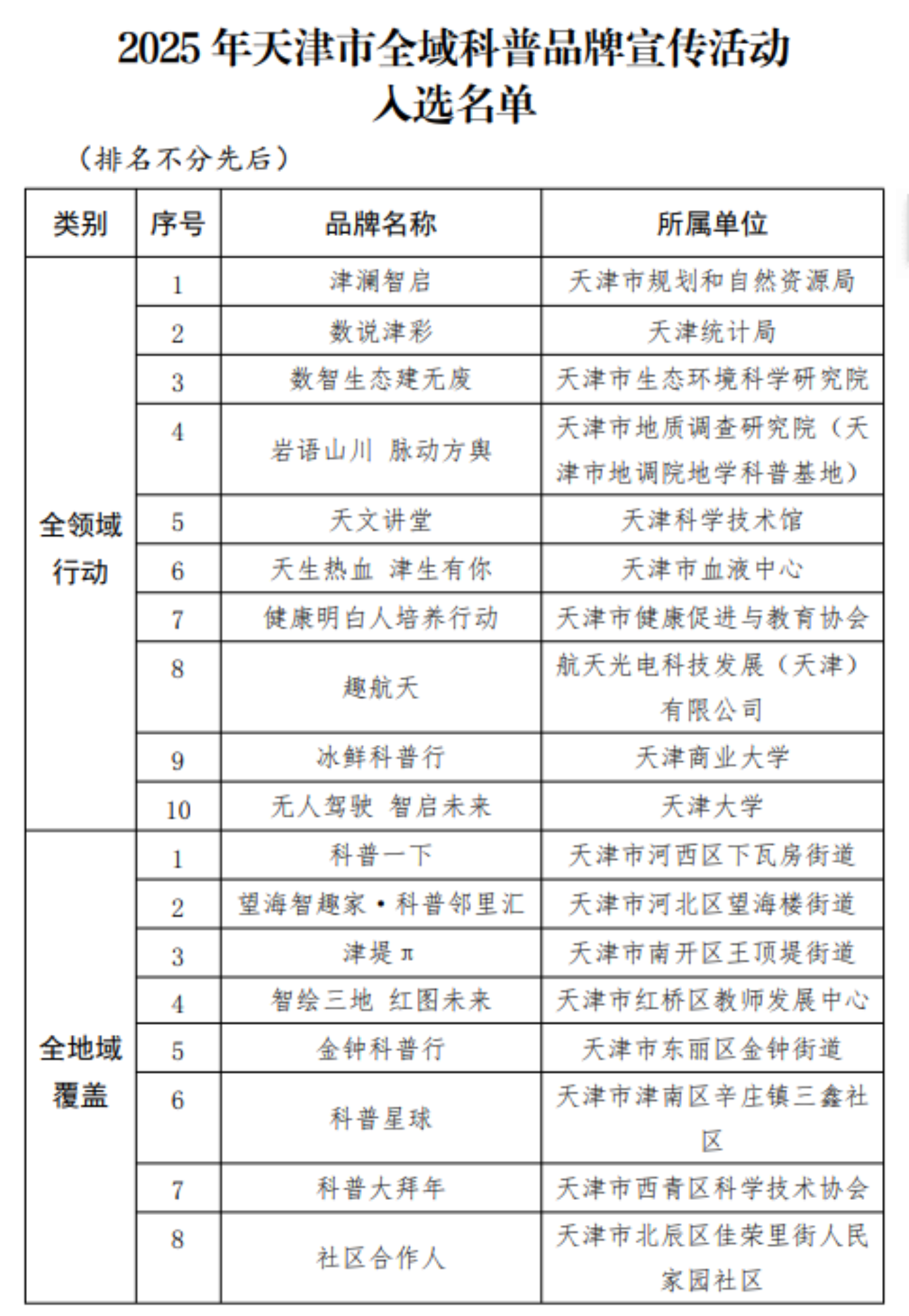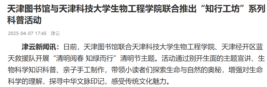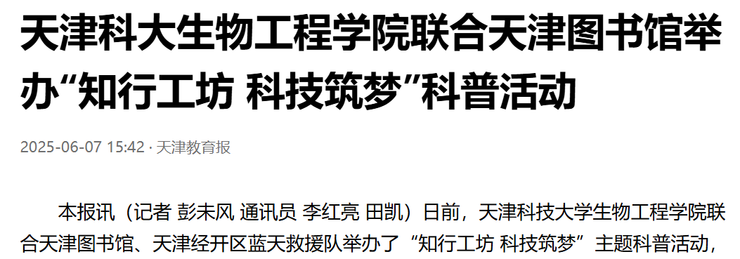 科普品牌入选2025年天津市全域科普品牌宣传活动名单。
