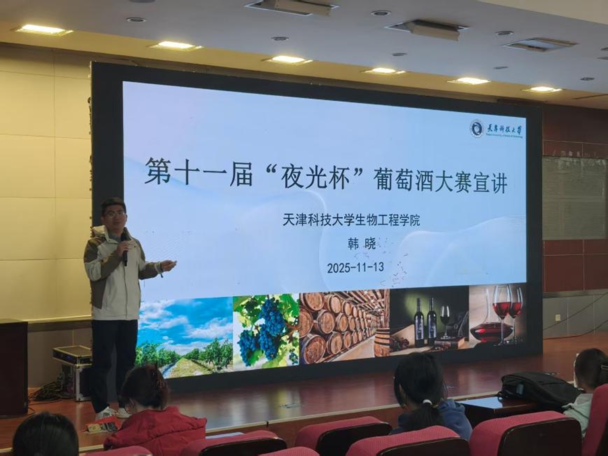 韩老师以趣味横生的方式为同学们深入剖析了葡萄酒的历史文化脉络、复杂精妙的酿造工艺以及极具艺术感的品鉴技巧。不仅带大家解锁葡萄酒背后的多元文化密码,吸引了许多同学对葡萄酒酿造过程的关注,更激起了大家参与这项活动的兴趣。
