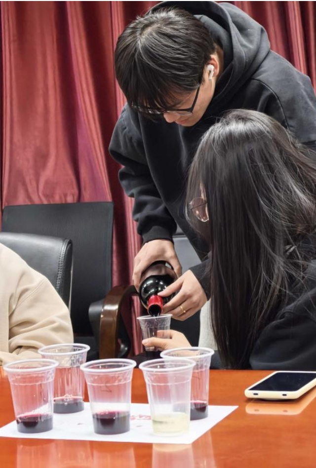 在线下会场,同学们满怀期待与热忱,全神贯注地聆听专家的精彩讲解。从黄河故道到伊犁河谷,在这场葡萄酒的探索之旅中,我们领略了气候与葡萄的相互成就,感受了品鉴葡萄酒的独特魅力,也见证了中国葡萄酒产区的蓬勃发展。在品鉴专家的带领下,同学们走进葡萄酒的世界,品味了这份大自然与匠心共同酿造的美好。