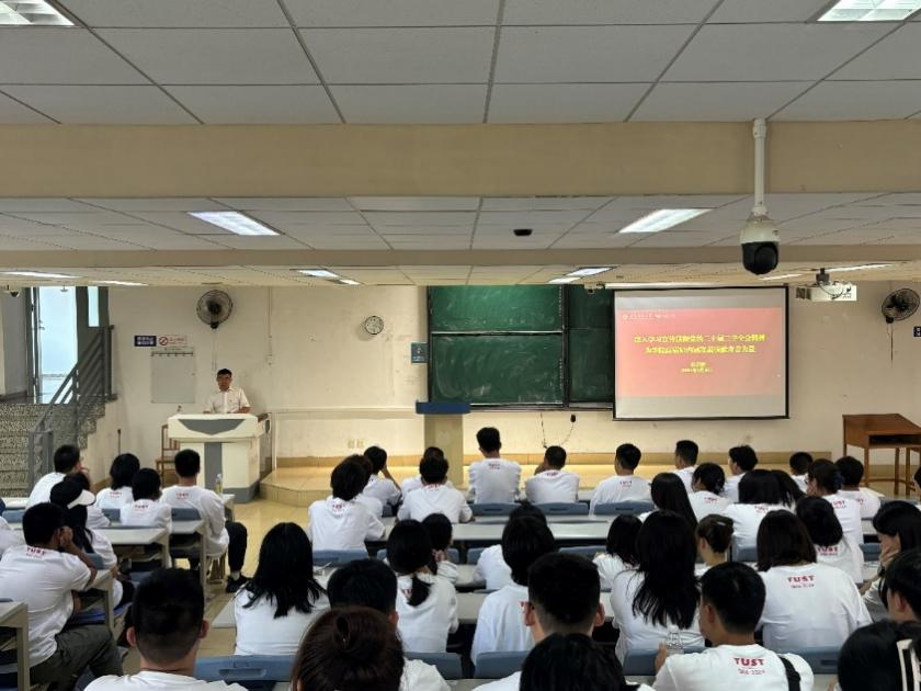 杜岩刚书记首先深入解读了党的二十届三中全会精神,通过生动的事例向新生们阐述了党的二十届三中全会对于国家发展、社会进步以及教育领域的重大意义。杜书记强调在新时代背景下,青年学生深入学习贯彻党的二十届三中全会精神的必要性和重要性,鼓励新生们要将个人的成长与国家的发展紧密结合起来,树立远大的理想和抱负。