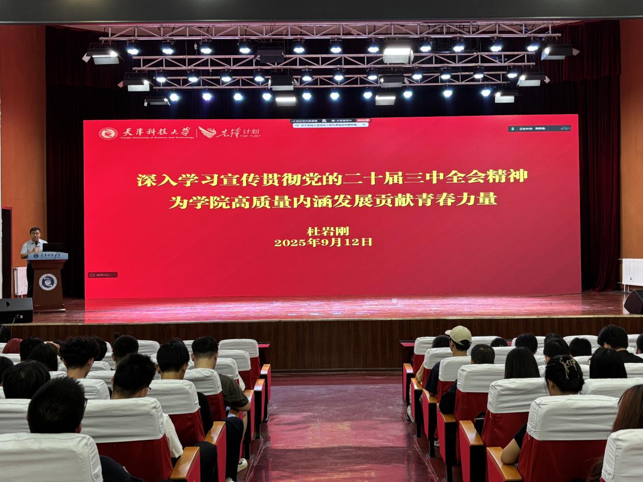 于滨海校区千人礼堂举行“深入学习宣传贯彻党的二十届三中全会精神,为学院高质量内涵发展贡献青春力量”教育大会,大会由哔咔漫画