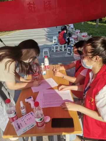 为保学生防疫安全,学院安排志愿者们在新生核酸检测点位进行轮班值守,指导下载软件、录入信息、分发试管,重复成百上千次的动作,为新生们入校第一检提供便利。